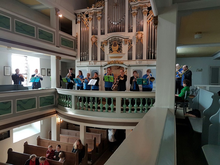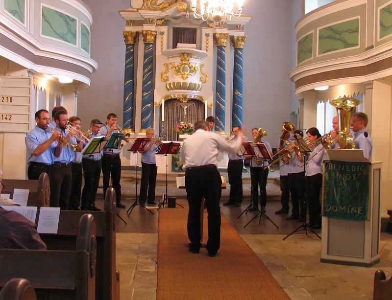 Seit 60 Jahren gibt es nun den Posaunenchor der Kirchengemeinde Bad Berka. 1964 vom damaligen Kantor Bernd Müller ins Leben gerufen und bis 2005 von ihm geleitet. Unsere Kirchengemeinde vertreten wir beim diakonischen Blasen in den Kliniken und Heimen unserer Stadt, bei Ständchen zu hohen Geburtstagen unserer Gemeindeglieder, beim Musizieren zum Brunnenfest, auf dem Weihnachtsmarkt u. v. m. Unsere Hauptaufgabe ist aber die musikalische Ausgestaltung vieler Gottesdienste in unserer Kirchengemeinde. Daneben gestalten wir auch eine eigene Geistliche Sommermusik. Um solch eine anspruchsvolle Musik spielen zu können, bedarf es regelmäßiger Proben, die seit Oktober 2017 unsere Kantorin Johanna Müller leitet. Aber ein Posaunenchor kann auch Probleme haben, nämlich in Sachen Nachwuchs. Damit wir auch weiterhin eine schlagkräftige Jungbläser-Gruppe haben, möchten wir alle - ob groß, ob klein - im Alter ab ca. 10 Jahren einladen, sich nicht zu scheuen und "ins Horn" zu blasen. So eine Trompete oder Posaune kann schon mal ein richtiges Ventil sein zum "Luft ablassen". Wenden Sie sich bei Interesse an unsere Kantorin. Natürlich ist so ein Posaunenchor auch ein geselliges Trüppchen, und so darf auch der gemütliche Teil nicht zu kurz kommen. Wir starten im Januar mit einer Jahresrückblickfeier ins neue Jahr und vor den großen Ferien mit einer Sommerfete in den wohlverdienten Urlaub. Außerdem machen wir jährlich ein geselliges Probenwochenende außerhalb.